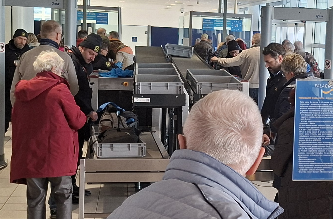 Am Gepäckausgabeband in Mailand gab es nochmal eine kleine Schrecksekunde, da das Band plötzlich stehen blieb und eine Warnblinklampe und ein eindringliches Tuten wohl ein technisches Problem signalisierte.