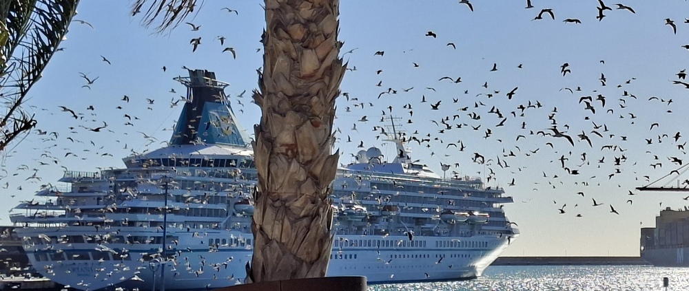 Das Wetter war immer noch recht schaurig. Schuld daran war der starke, kalte Wind. Die ARTANIA stampfte stoisch ihren Kurs. Irgendwann im Laufe des Vormittags kam die spanische Südostküste in Sicht und zwar so nahe, dass das spanische Mobilfunknetz in genügende Reichweite kam. Dank der europäischen Roamingregeln konnten wir das ARTANIA-WLAN zugunsten der deutschen Mobilfunkverträge erst mal abschalten. Wir waren bei Weitem nicht die Einzigen an Bord, die ihr Handy zückten und den Laptop anwarfen.