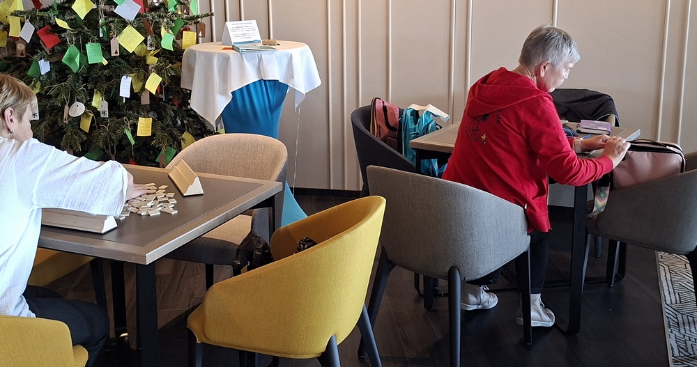 Sehr beliebt auf dem Schiff ist die Bibliothek, die hauptsächlich als Spielzimmer genutzt wird. Die Tische und Stühle sind bezüglich Ergonomie bestens für das Spielen von Karten- und Gesellschaftsspielen geeignet und natürlich auch für das Arbeiten mit dem Laptop. Oft sind alle Tische der Bibliothek belegt, während in der benachbarten Harry’s Bar genügend Plätze frei sind. Aber die Cocktailtischchen und die Clubsessel dort sind äußerst unbequem bis ungeeignet fürs Spielen und Computern, weil der Sinn und Zweck dieser Lounge-Möbel in erster Linie darin besteht, Bequemlichkeit für den Genuss von alkoholischen und nichtalkoholischen Getränken zu schaffen und für die passende Atmosphäre für das nette Gesprächen zu sorgen.