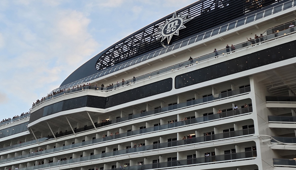 Die MSC Virtuosa, die heute mit und an der Pier von St. George's lag, kann mehr als 6.000 Passagiere aufnehmen.