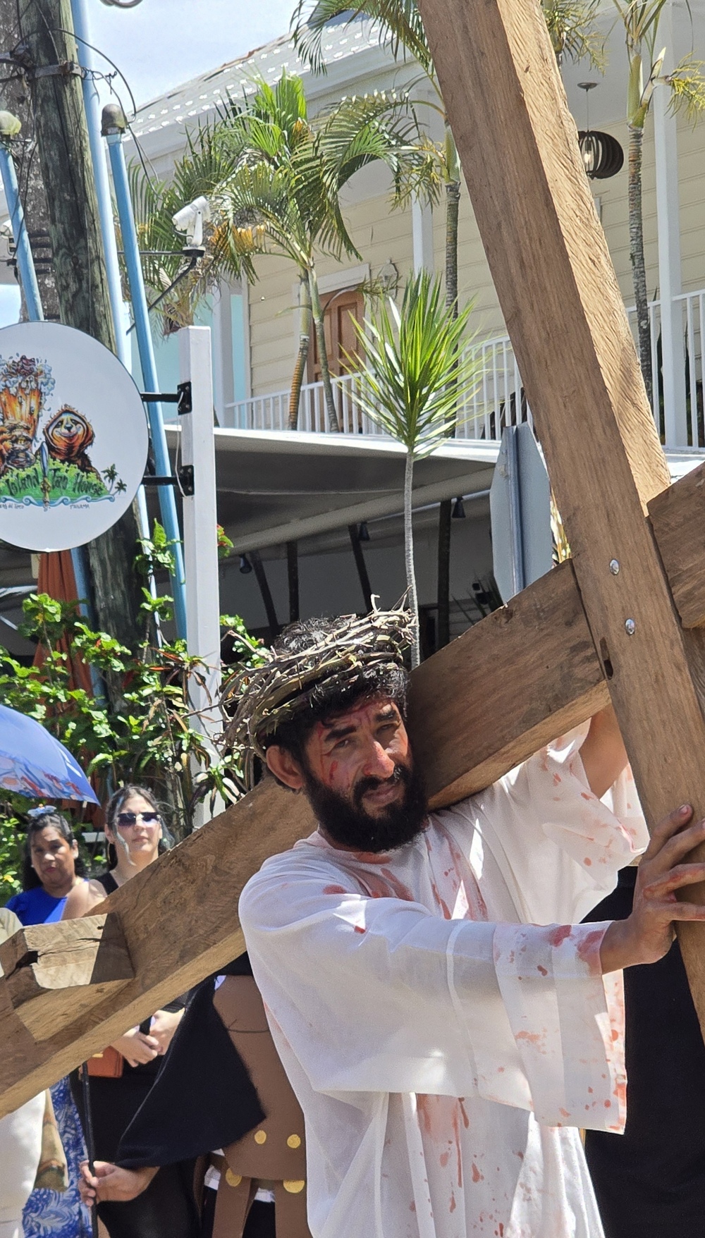 Die Kapelle führte eine Karfreitagsprozession an mit einem recht realistischen Jesus, der sein Kreuz zu tragen hatte.