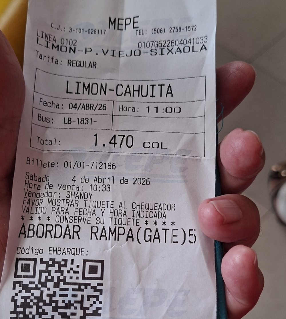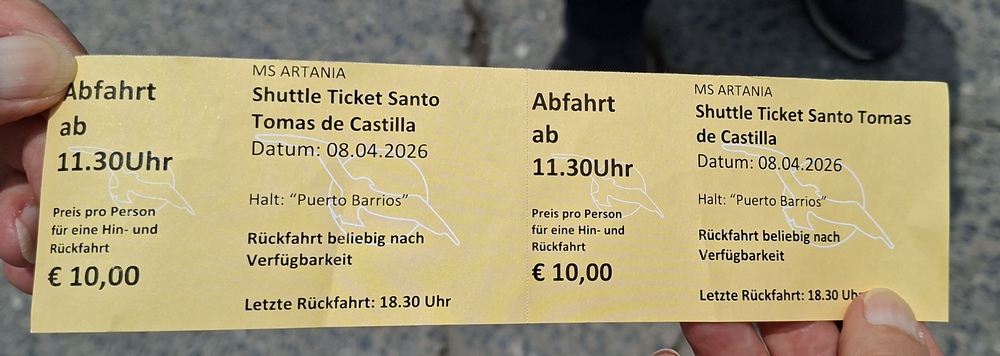 Wir erstanden jeder ein Ticket (einfache Fahrt) für 1.470 CRC (Costa-Rica-Colón), das sind umgerechnet 2,75 €.