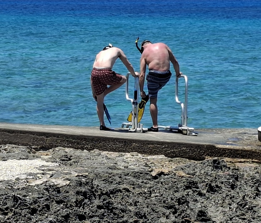 Für uns war es ohne Bedeutung, dass die Passagiere nicht, wie im Tagesprogramm ausgeschrieben, spätestens um 17:30 Uhr zurück an Bord sein sollten, sondern bereits um 17:00 Uhr. Der Grund dafür sei die notwendige Frischwasseraufbereitung durch die bordeigene Entsalzungsanlage. Dies kann nicht im Hafen, sondern nur auf offener See erfolgen.