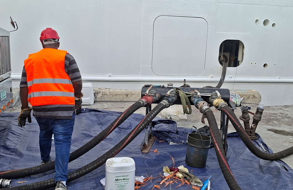 Als uns das Taxi wieder zum Hafen zurückgefahren hatte, war die Betankung der ARTANIA im vollen Gange. Der Sprit kam aber nicht wie üblich von einem Tankschiff, das längsseits an der ARTANIA festgemacht hatte, ...