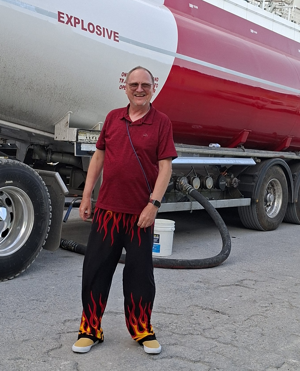 Zum einen waren da die verschiedensten Warnhinweise an den Fahrzeugen wie „Explosive“, „Flammable“ oder „No Smoking“ ...