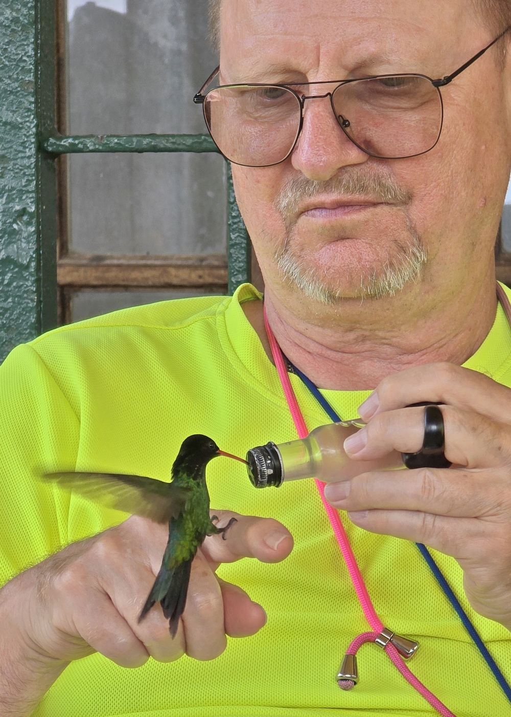 In einem Freiluftpavillon nahmen wir Platz und ausgestattet mit einem Fläschchen Zuckerwasser ...