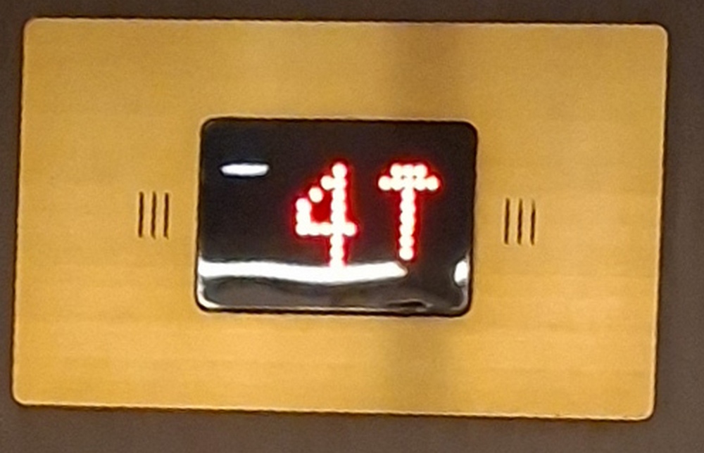 Das Display über der Fahrstuhltüre zeigte an, dass der Fahrstuhl nach oben fahren würde (wenn er denn könnte), also genau in die Richtung in die Doris wollte.