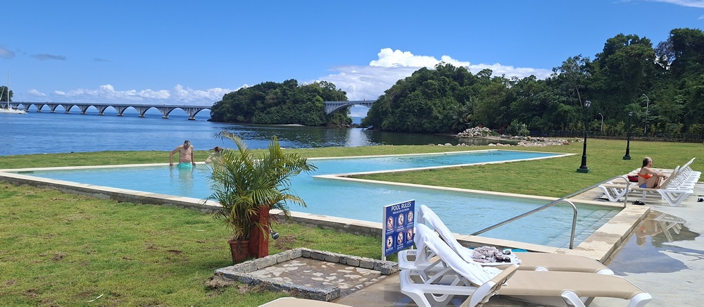 ... dass es am Tenderanleger einen nagelneuen Pool (Baujahr 2026) und Liegen für Kreuzfahrtgäste gab und das ohne irgendwelche Gebühren.