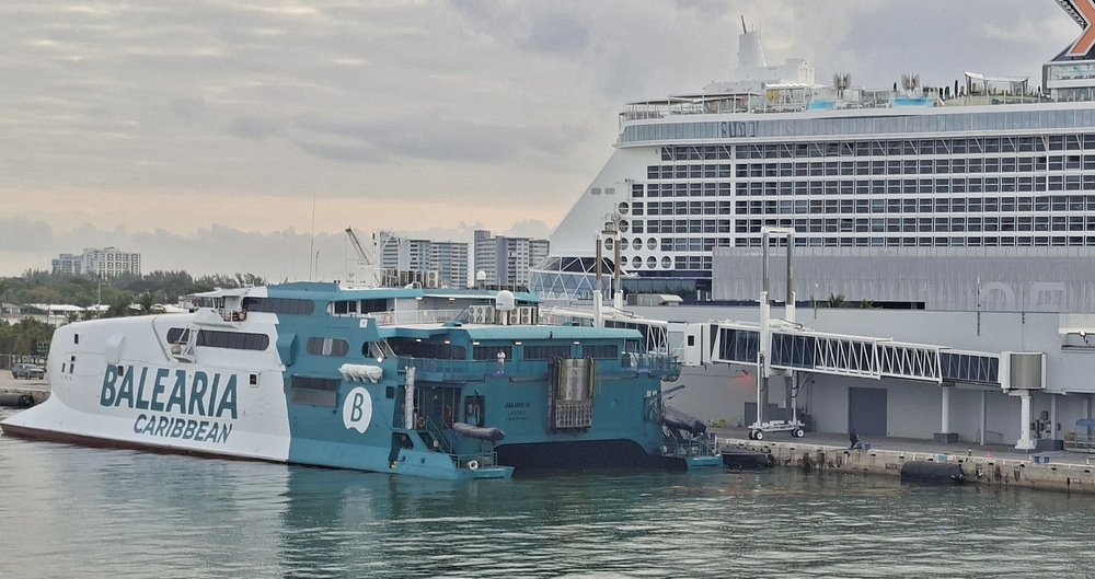 Mit uns lag die Katamaran-Fähre Jaume II, eine High-Speed Ferry im Hafen.