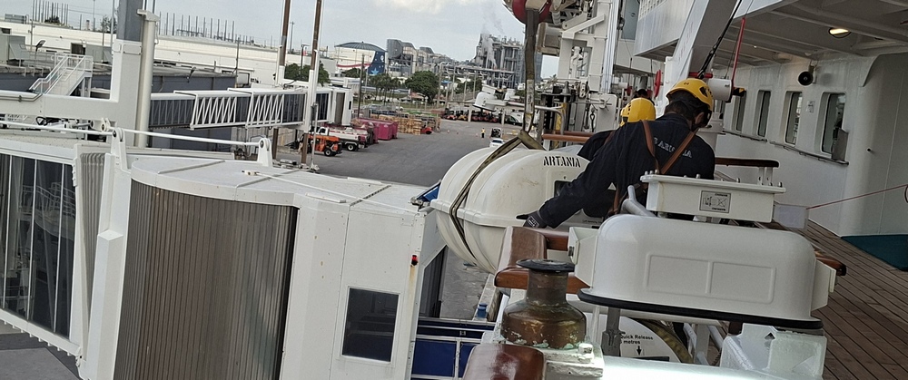 Um 14:45 Uhr fand die Rettungsübung statt und um 16:00 Uhr startete die ARTANIA zur letzten Etappe mit der Bezeichnung Karibik, US-Ostküste und zurück in die “Alte Welt“.
