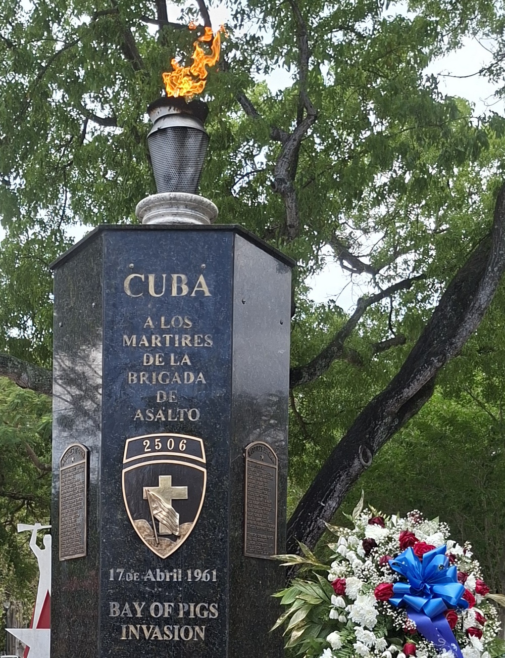 Das Bay of Pigs Monument in Little Havanna, erinnert an eines der dramatischsten Ereignisse des Kalten Krieges. Die „Invasion in der Schweinebucht“ (Bahía de Cochinos) im April 1961 war ein gescheiterter militärischer Versuch, die kubanische Regierung unter Fidel Castro zu stürzen. Schon damals scherten sich die amerikanische Politik einen Dreck um das Völkerrecht.