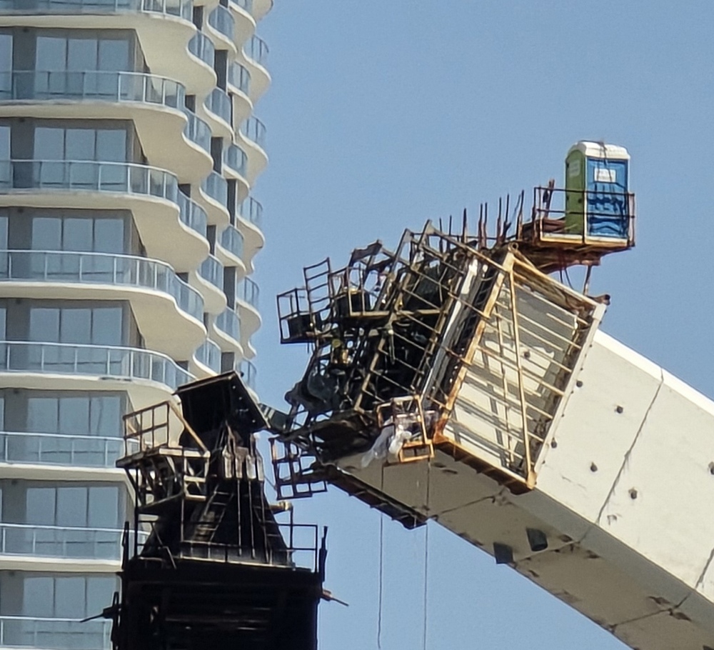 … sondern auch das Dixi-Klo in luftiger Höhe.