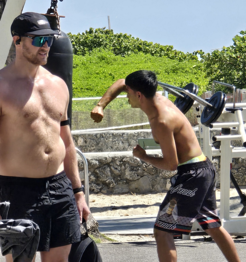 ... dem Begutachten der Muskelmänner am Lummuspark ...