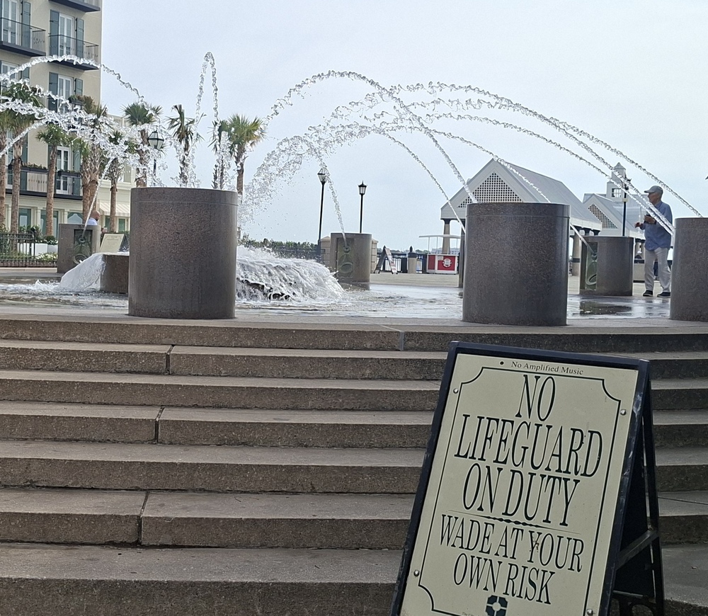 Das Hinweisschild, dass kein Rettungsschwimmer im Dienst ist und das Waten im Brunnen auf eigene Gefahr erfolgt, hielten wir zunächst für einen Witz.