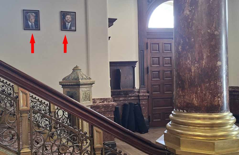 Der Dienststellenleiter dieses Postamts scheint kein Freund des Präsidenten und Vizepräsidenten zu sein, denn die Portraits dieser beiden "ungewöhnlichen" Republikaner hingen nicht an exponierter Stelle im Schalterraum, ...