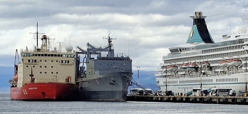 Gegenüber der ARTANIA lag ein großes Versorgungsschiff der argentinischen Marine und an dessen Seite hatte ein dicker Eisbrecher angedockt, dessen