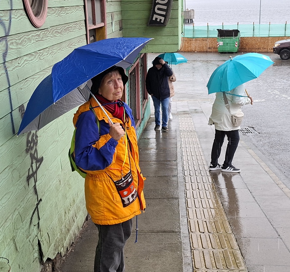 Nach dem Frühstück tummelten sie sich immer noch. Also nichts wie raus und fragen. Vorher gingen wir noch rasch auf die Kabine, um uns wärmere Jacken anzuziehen, denn hier am Ende der Welt, wie Ushuaia gerne bezeichnet wird, geht es auf den Herbst zu und es ist recht frisch und windig.