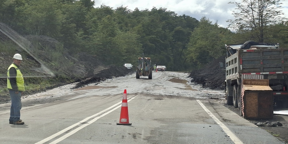 Ein Bagger und Straßenbauarbeiter waren zwar immer noch dabei, die Straße zu säubern, aber zumindest eine Spur konnte jeweils abwechselnd von beiden Seiten wieder befahren werden.