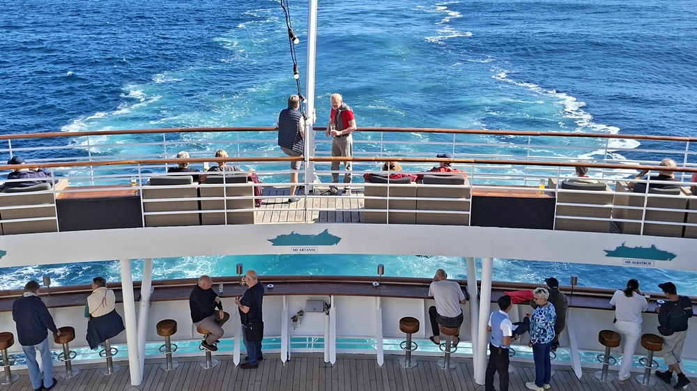 Auch fand gstern noch ein kleiner Crewwechsel statt. 25 Crewmitglieder stiegen ab und flogen nach Hause, dafür waren 25 Neue angekommen. Unter naderen der Kellner Her (ja nur mit einem "r"), der uns schon seit vielen Jahren im Artania-Restaurant bedient hat.