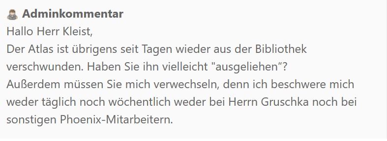 Und dass ich den Atlas aus der Bibliothek mitgenommen habe, was der Herr sogar eigenäugig gesehen hat – dazu fällt mir nichts mehr ein????