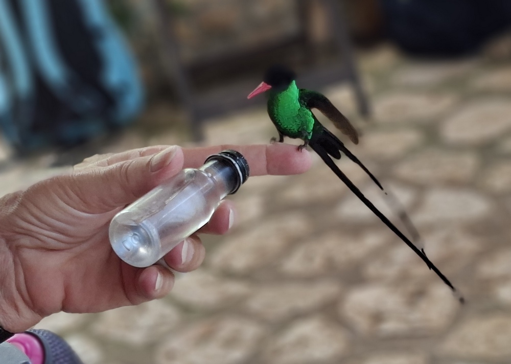 In einem Freiluftpavillon nahmen wir Platz und ausgestattet mit einem Fläschchen Zuckerwasser ...