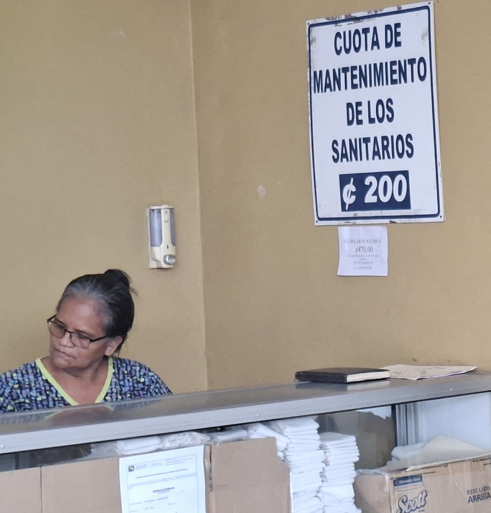 Hat der Obolus in Puerto Limón im Busterminal noch 200 CRC (0,37€) betragen, wie auf dem Foto zu sehen ist, hatte sich hier in der Touristenmetropole an der Busstation der Preis auf 400 CRC verdoppelt.
