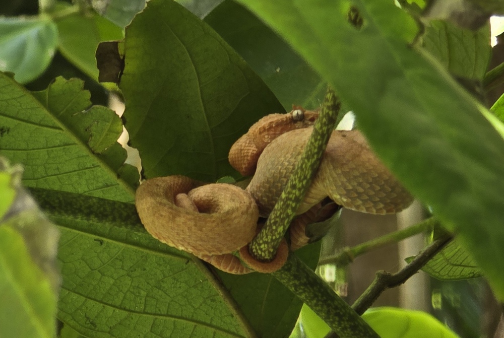 Die giftige Eylash Viper ist nicht sehr groß ...